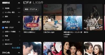 DMMの「韓国・アジア作品」ページを見て驚くのは、約2,000本近い豊富なラインナップ。
