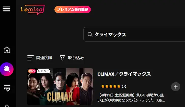 『クライマックス』はLeminoでいつから配信?