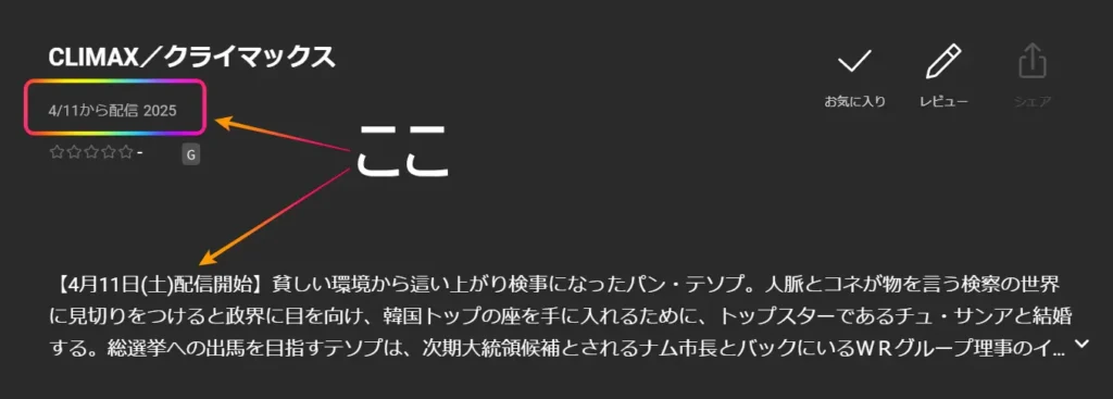 『クライマックス』の配信開始日は、4月11日(土) 0時です。