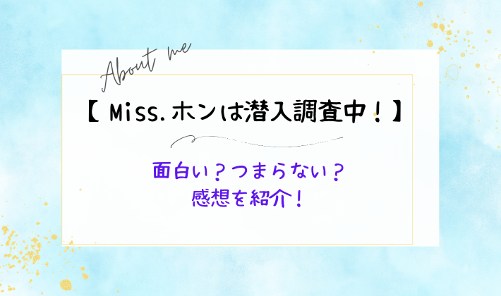 そこでこのページでは『Miss.ホンは潜入調査中』の感想を調査しました。