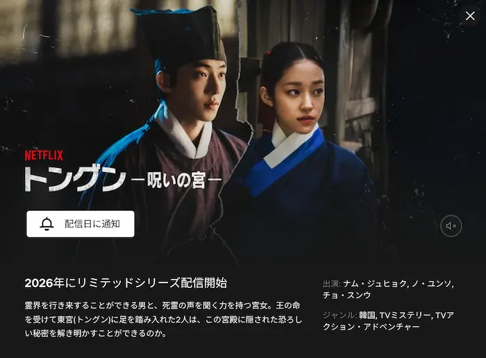 日本ではNetflixで「トングンー呪いの宮ー」として配信予定(2026年春~夏頃)なので、放送開始を楽しみに待ちましょう!