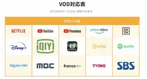 さらに、韓国のTV局MBCやSBS,TVING、Viuまで対応しているなんてすごいです。